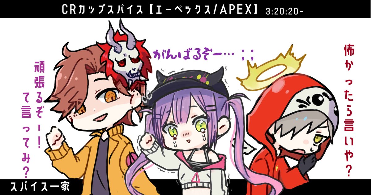 普段エペのCRカップ見てないんだけど スパイス一家が面白すぎて推してます 特に21日のカスタムのやり取りが好きすぎて涙出そう (三人初描きだから違くても大目に見て) #だるまいずごっほ #Arisakaaa #TOWART