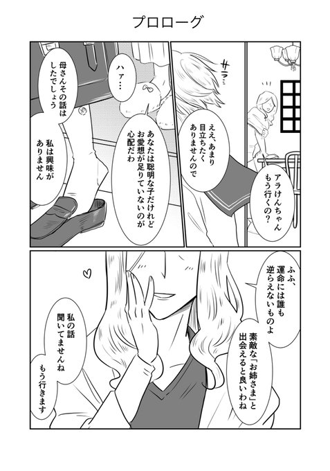 125 616 とりあえずできた分だけ! マリヨチャン原作の女装百合BLギャグです女子校で姉妹になる五七と灰夏が出てきます! ⚠️マジ何でも許せる方のみでお願いします🫶 モブは初っ端のみ七ちゃんのお母さん(顔ほぼナシ)が出ます。 さとるはそのうち出てきます! 22/10/01 19:10