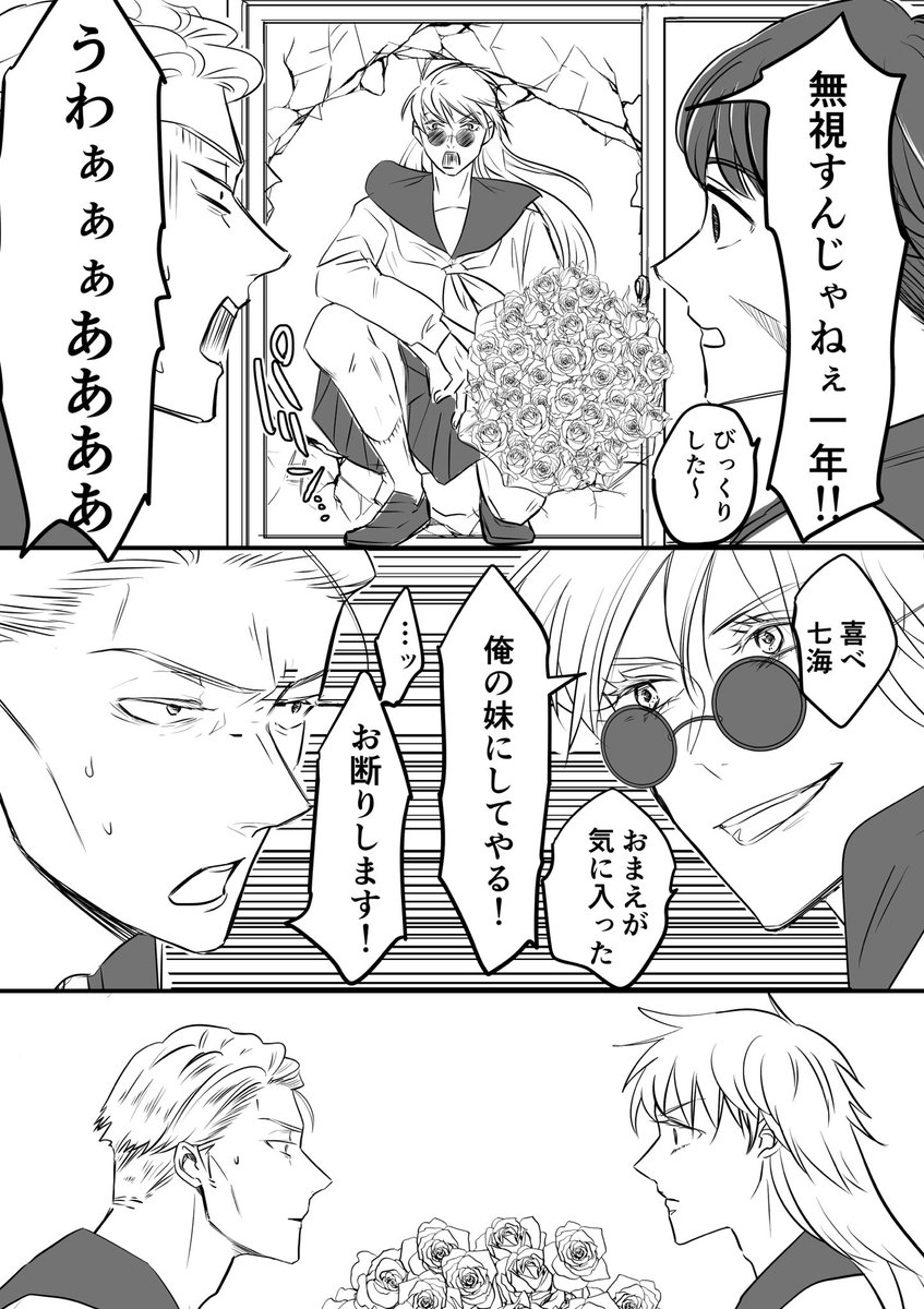 とりあえずできた分だけ! マリヨチャン原作の女装百合BLギャグです女子校で姉妹になる五七と灰夏が出てきます! ⚠️マジ何でも許せる方のみでお願いします🫶 モブは初っ端のみ七ちゃんのお母さん(顔ほぼナシ)が出ます。 さとるはそのうち出てきます!