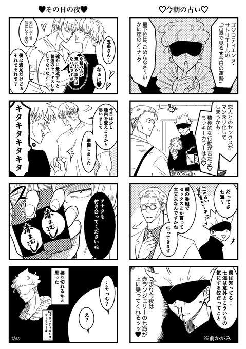 イベントも終わったので… gonananペーパーに寄稿した、侑紫さんオリジナル(?)キャラのゴジョティエンヌ•サトリエール先生の占いマンガです! めっちゃ気に入ってるから読んで〜