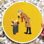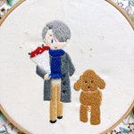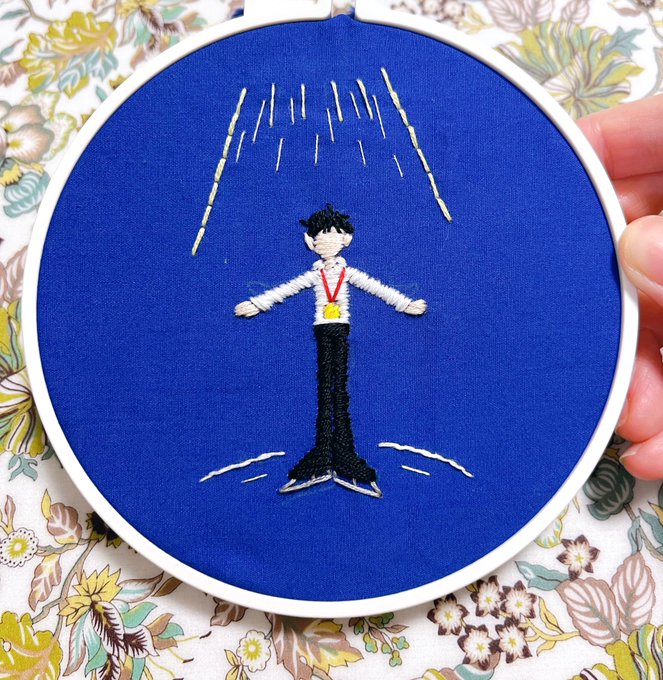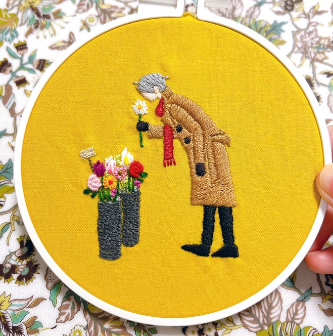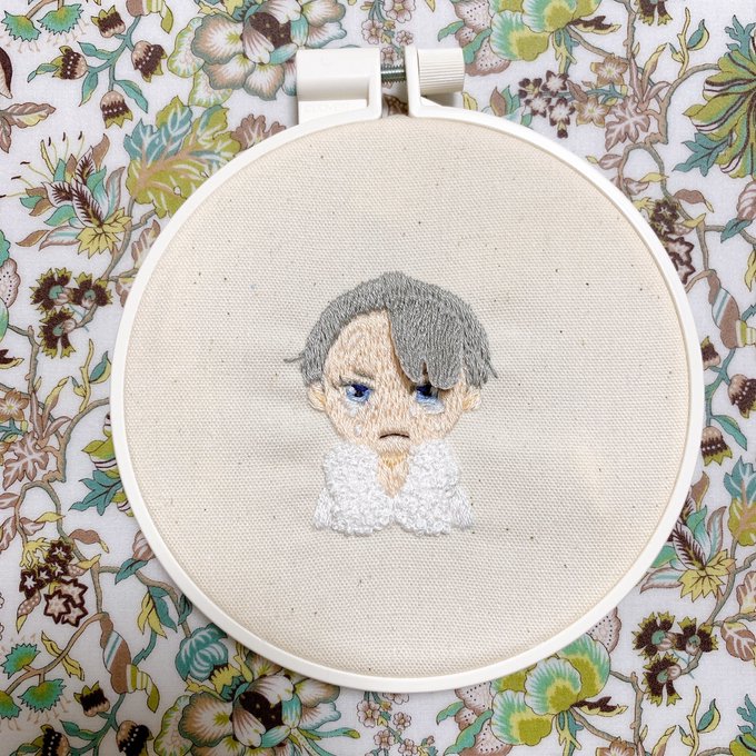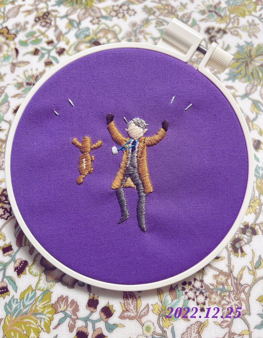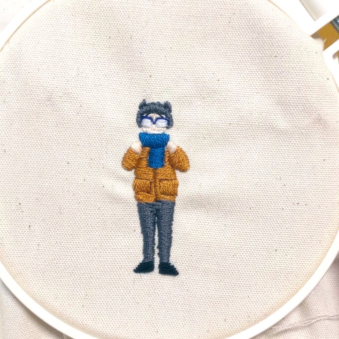 55 267 ハナさん@monya_hana のイラストをモチーフに刺繍させて頂きました。 まず一つ目は背景カラーを合わせて。 twitter.com/monya_hana/sta… 22/11/23 22:08