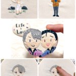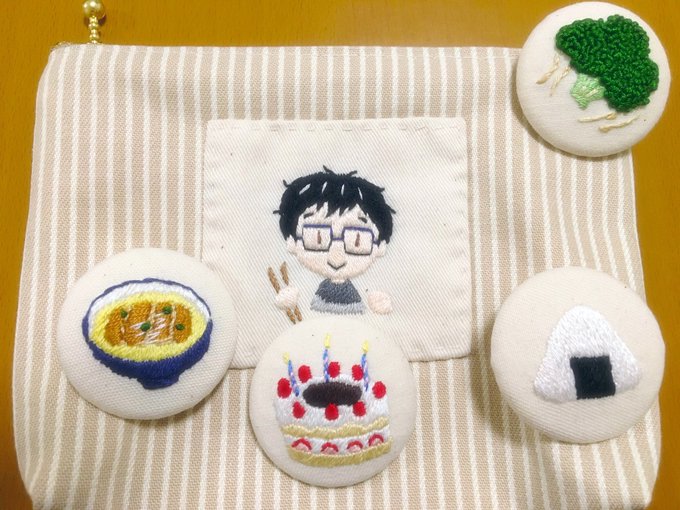 ハナさん@monya_hana のイラストをモチーフに刺繍させて頂きました。 まず一つ目は背景カラーを合わせて。 twitter.com/monya_hana/sta…