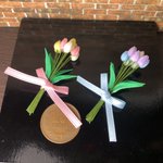 6 8 【蝶翅堂】WF新作・チューリップの花束(青系、ピンク系・大、小) パステルカラーのチューリップを花束にしました。カラーは青系(水色、紫色、白)とピンク系(ピンク、黄色、白)の2種、小は3輪(¥700)、大は9輪(¥1,500)の花束です。春待ちな風景にもイースターにもどうぞ。#wf2020w #蝶翅堂 20/02/07 22:15