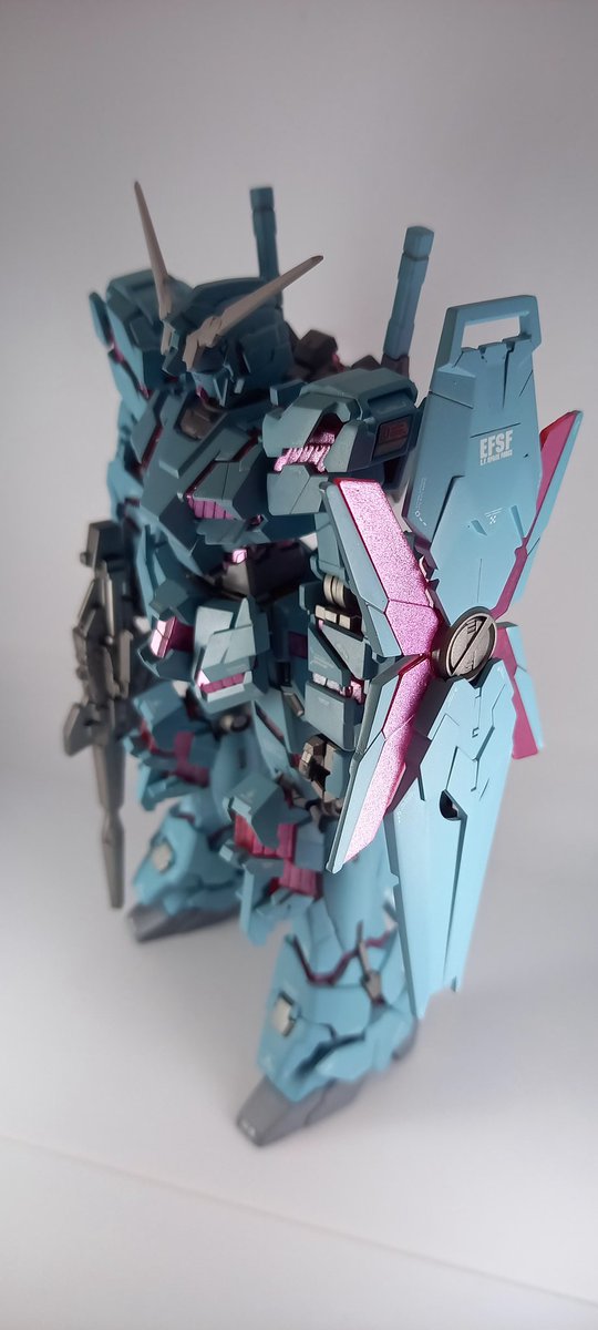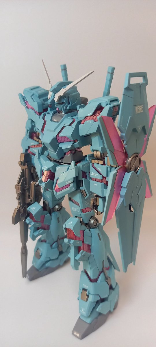 お疲れさまです。9月末から始めてやっと完成しました❗ユニコ(ーン)ガンダム❗ カラーリングイメージは手塚治虫のユニコから拝借しております。サイコフレームは艶あり、外装は艶消し仕上げ、初使用のアシタのデカールをモリモリに使用してます‼️ #ガンプラ #ガンプラの画像貼るとRTされると聞いて