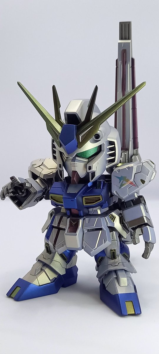 お疲れさまです、福岡νガンダム(SD)全塗装完成しました❗ちょっとした加工と塗り分けで過去一番時間かかりましたが、自分の中で納得行く形で終わらせることができました😊 今回はクレオスのクリスタルカラーをメインで使用してます🎵 #ガンプラ #ガンプラの画像を貼るとRTされると聞いて