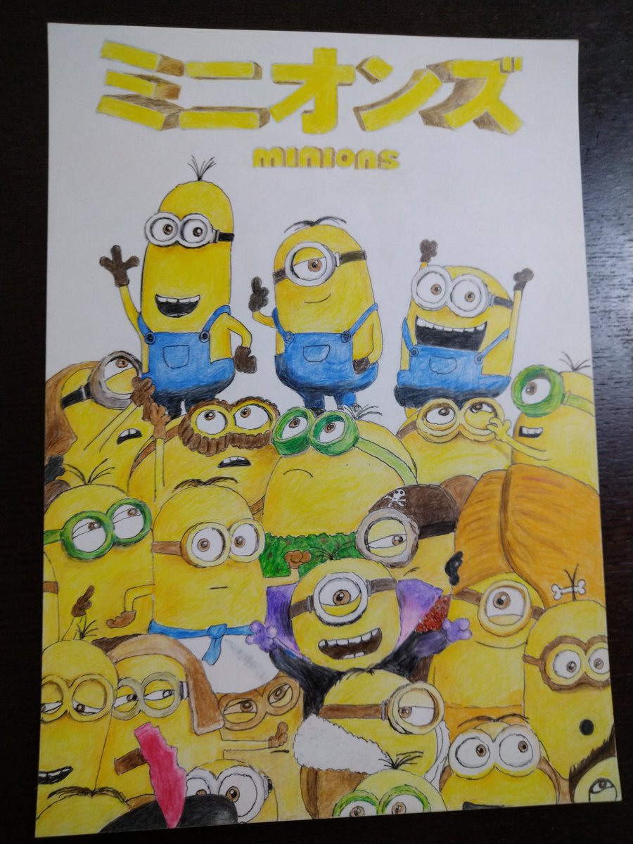 過去絵「ミニオンズ」 全員に名前があるんですよ(*_*) 上段の左からケビン、スチュワート、ボブです😁 その他の名前は知りません😅