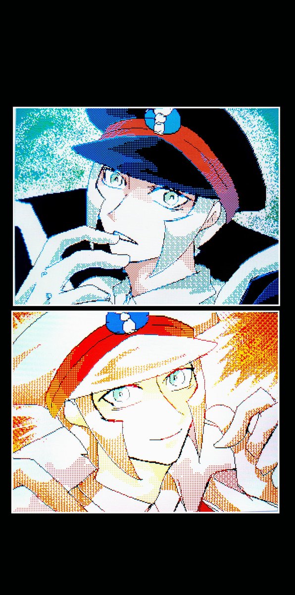 いつも黒に青と緑、白に赤と黄にしているのでたまには背景逆にしてみた (うごメモ)写真加工 #サブウェイマスター #sbms #ノボリ #クダリ