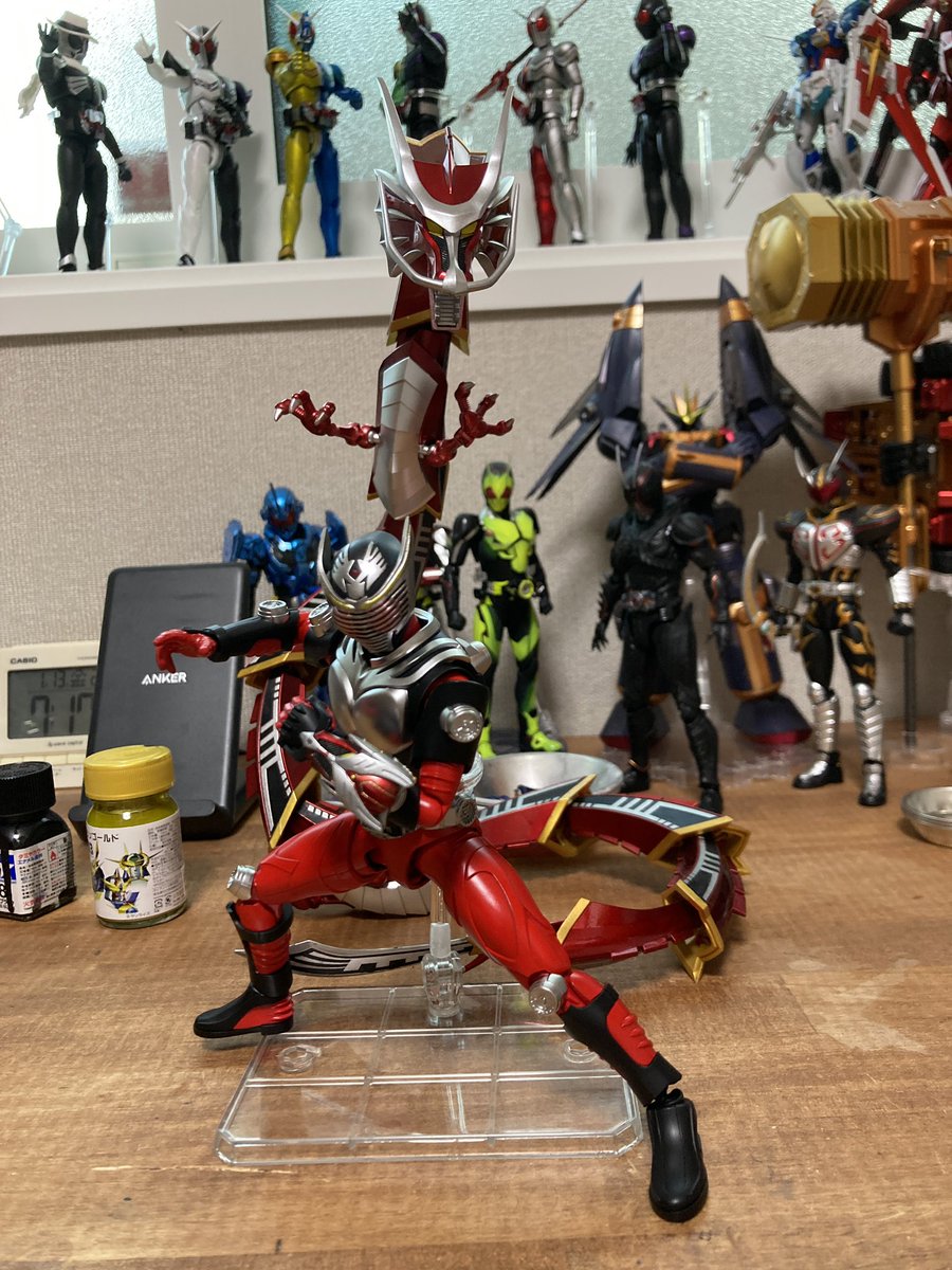 フィギュアライズスタンダード 仮面ライダークウガ ドラゴンフォーム 全塗装しました! ボディはグラデーションを入れてます。 ドラゴンロッドはレジンでクリアパーツっぽくしています。 #フィギュアライズスタンダード #ニチアサフィギュア改造部 #仮面ライダークウガ
