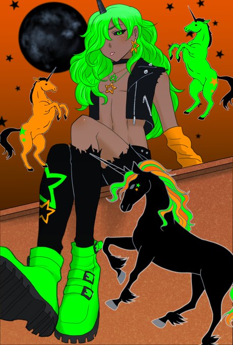 今描いてるマンガの方でいっぱいで、中々イラスト描けないのですが… ハロウィンっぽいイラスト描きました💚 黒ユニコーンな男の子です! 創作されてる方、♡orRTでお迎えに行きます~ #秋の創作クラスタフォロー祭り #絵描きさんと繋がりたい #ハロウィンイラスト展示会2021 #オリジナルイラスト