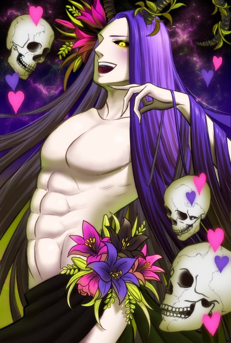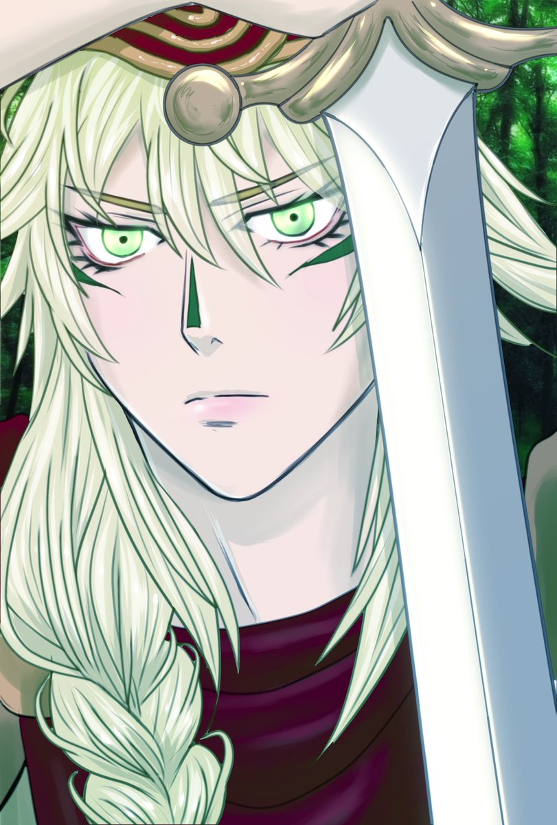 できたー! 悪魔ベリアルをイメージして描きました!紫×緑のカラーリング✨ ベリアルは容姿端麗な悪魔で、ベリアルという名前は「悪」そのものを意味しているらしいですよ! #長髪男子 #ファンタジー #絵描きさんと繋がりたい #イラスト好きな人と繋がりたい #アトリエの系譜