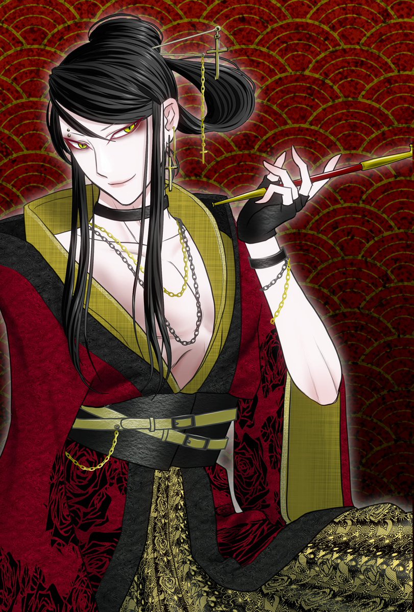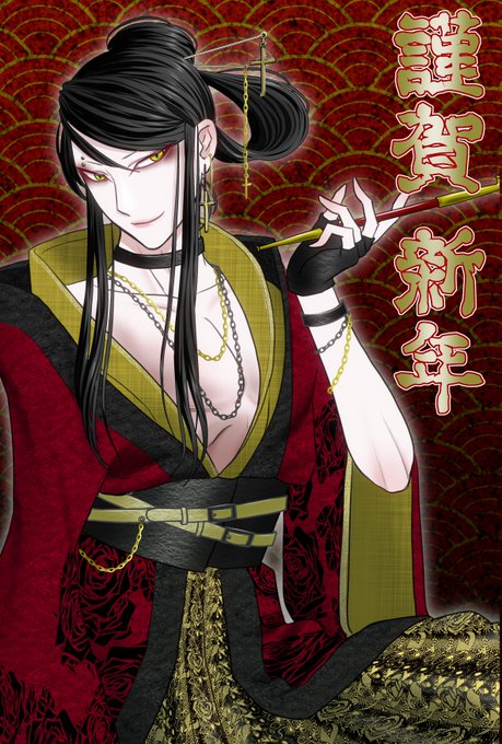 遅くなっちゃいましたが、お年賀イラストですー! 和パンクな感じになりました。 男の子にメイクさせるのたのしい…🤤 #絵描きさんと繫がりたい #イラスト好きな人と繋がりたい #長髪男子 #着物 #和風イラスト #お正月イラスト