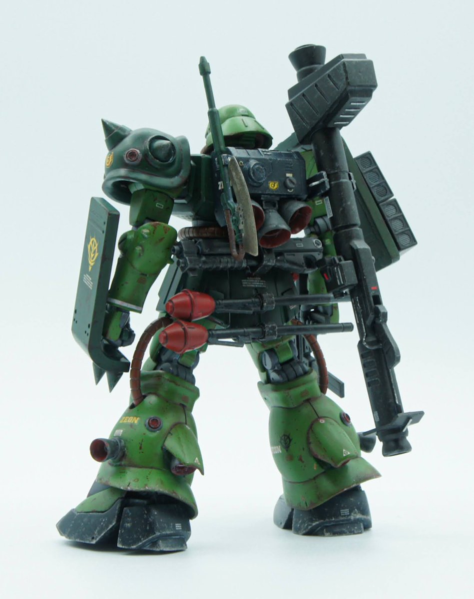 HGUCザクⅡ改 完成✨ 製作途中で10年放置しましたが 何とか完成までこぎつけました! HGUCを軸に旧キットの外装を被せて 力強いシルエットに改造しました 度重なる激戦、死地を乗り越え 残った武装を全て積込んだ ザクⅡ改は最期の戦いへ ↓画像続き #ガンプラ #ガンプラ好きと繋がりたい #ザク2改