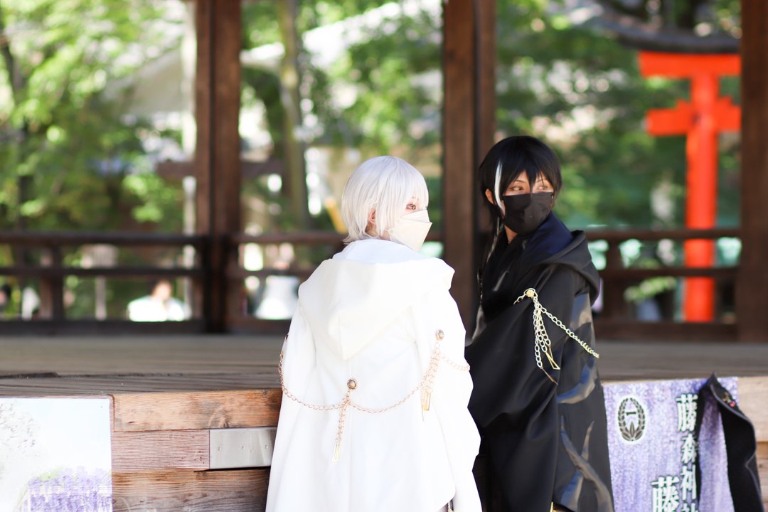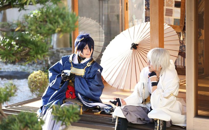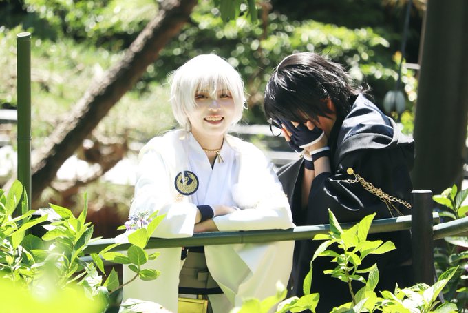 #レイヤーさんはコスプレの時のオフショットを晒して下さい 白鶴と黒鶴の時のオフショ 1枚目+可愛すぎて悶えるただの私 2枚目+いや仲良しか! 3枚目+大爆笑してる二振。爆笑してる所を載せていいか分からなかったので白鶴さんだけお顔を隠してます。 4枚目+白黒マスク😷