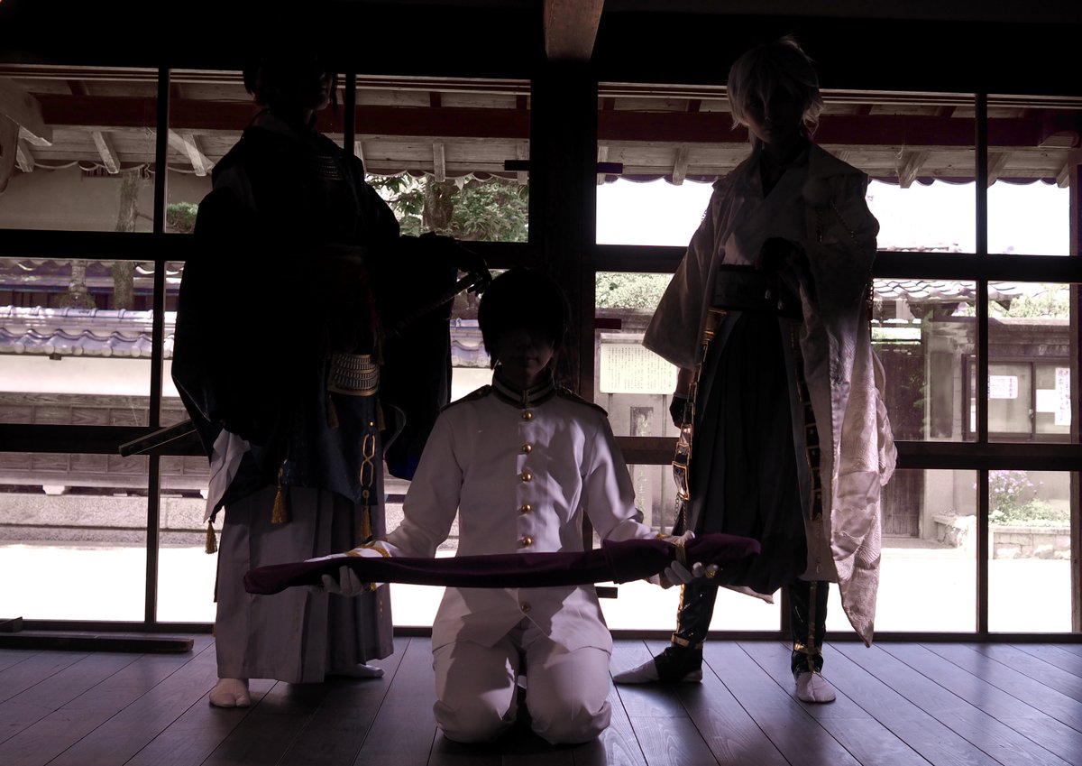 #刀剣男士を実際に着てみてわかったこと 言うまでもなく三日月は動きにくかった。何より階段の登りに弱い。 袴を踏んで階段の途中で転ぶ。 動きにくさについては改良を重ねて機動力高めの三日月に進化していったけど階段は克服出来ていない(笑)