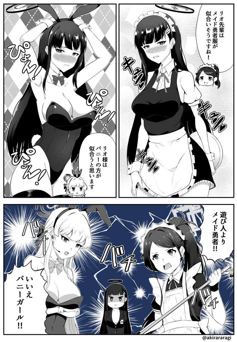 リオ会長にコスプレを提案するアリスとトキ #ブルアカ
