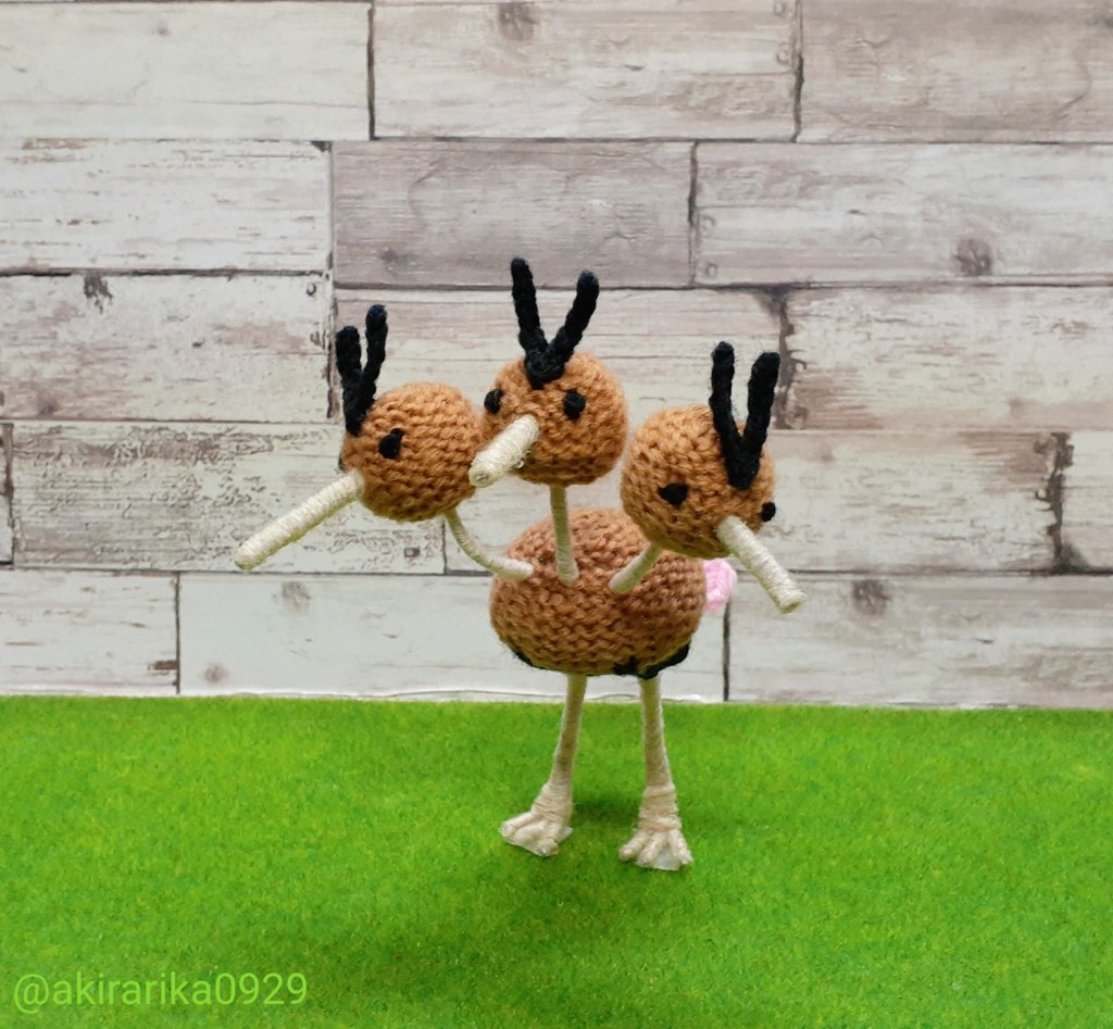 ゆるくないけどなかなかいい感じに編めた #あみぐるみ #ポケモン編めるかな #ドードリオ #ポケモン