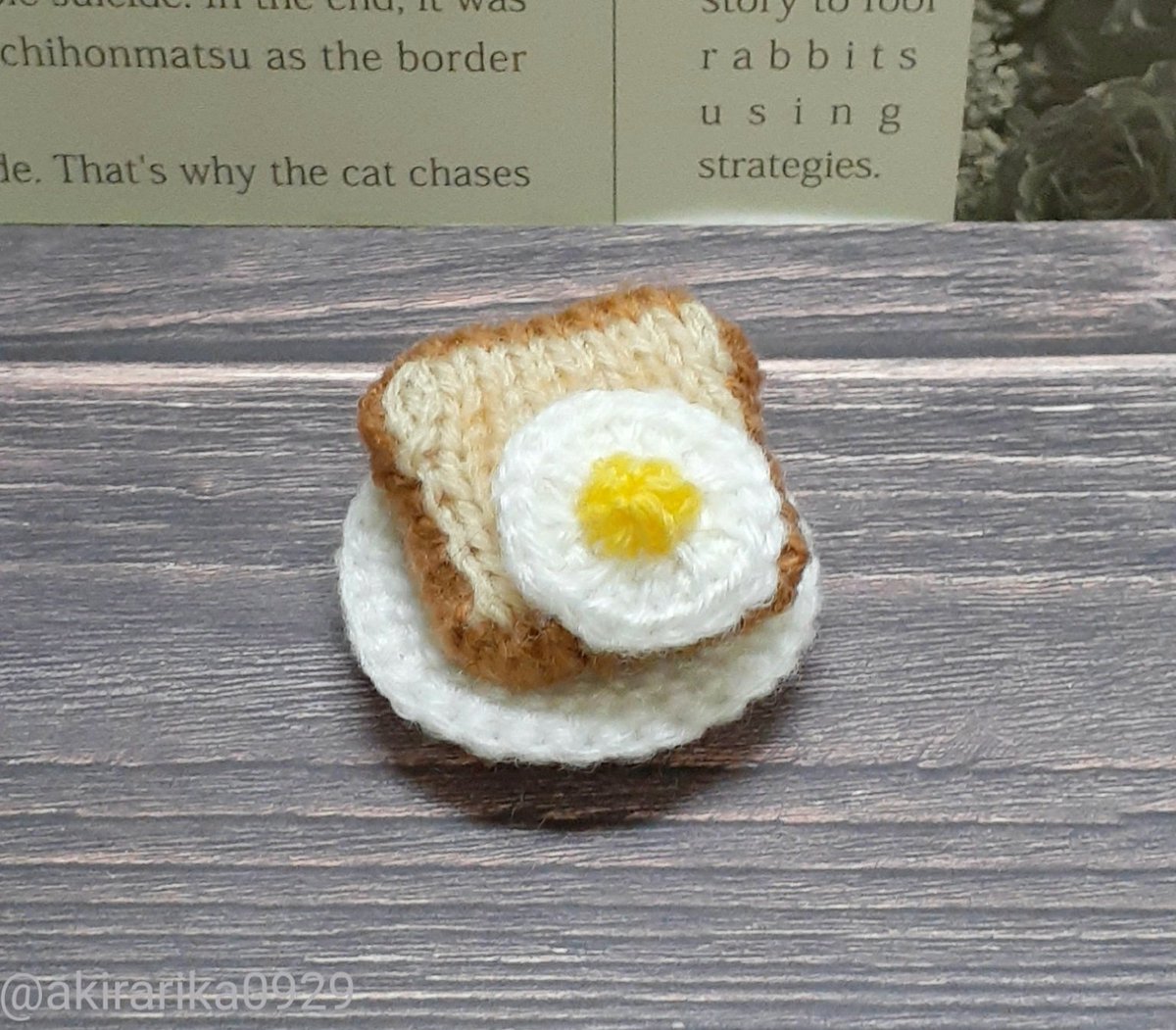 今日のお昼にトーストと目玉焼きを食べたのでラピュタパン編んでみました #あみぐるみ