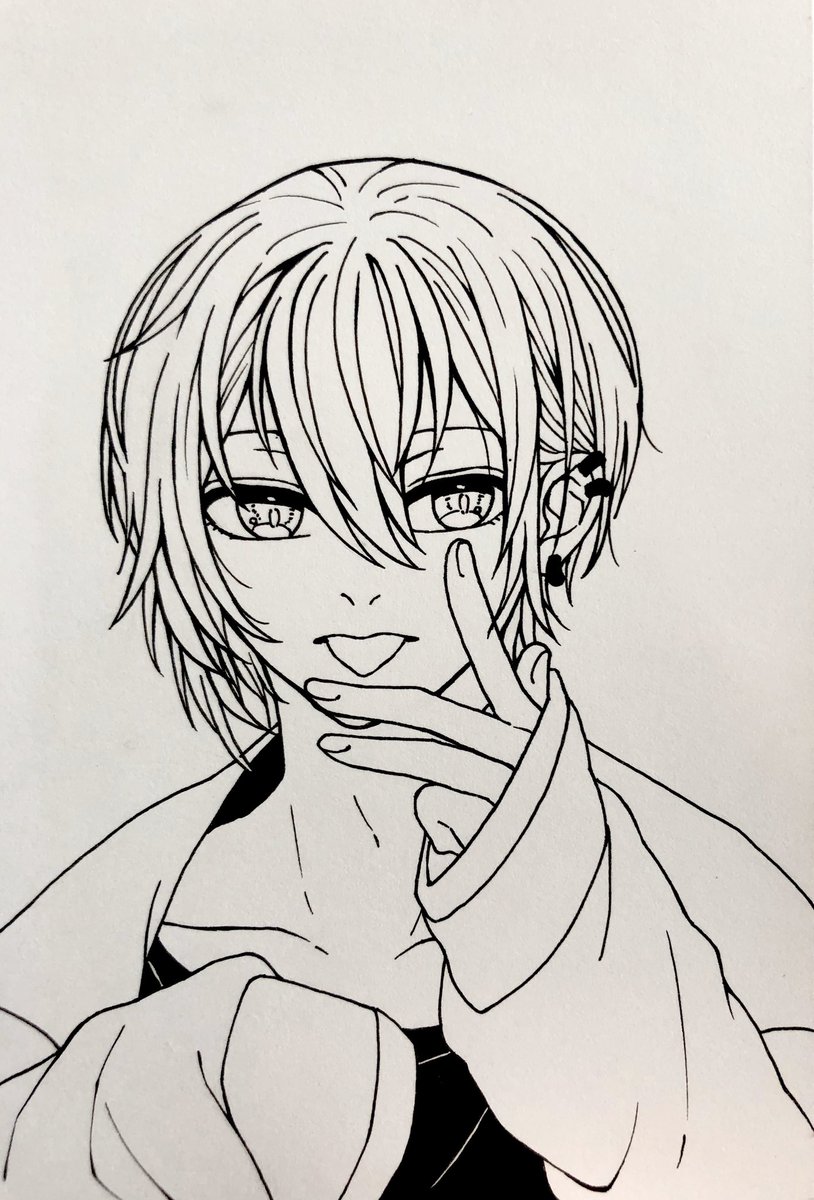 あっかんべーしてる灰君。 黒系のコピックインクが切れたから塗れない…。 #灰画