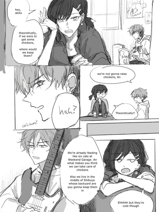kohane likes taking photos of vbs #prsk_FA (I accidentally tone curved a lot but it ended up looking cool, so I post both :-D) (Akito is way in the background, an tripped him or something lmao)