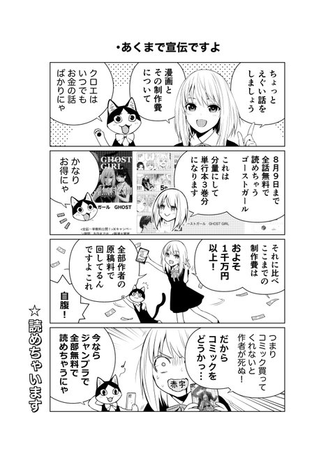 オリンピックが終わりましたが、ゴーストガールの全話無料開放も明日9日までです! この期間に、たくさんの新しい読者と出会えてすごく感謝しています! 後で読むつもりだった方、明日までですよ〜! shonenjumpplus.com/episode/139336…