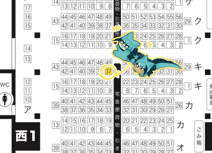 43 329 10/16🥓のスペース番号出てました!「西1ホール キ37b」です。猫チャンログ本、アクキー、そして消しゴム諸々を持って行きます。また後ほど改めてお品書き流します〜!🐝 22/09/22 08:40