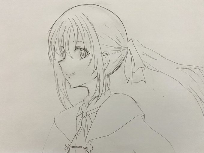 #イラスト好きな人繋がりたい #鉛筆画 #絵師さんと繋がりたい #イラスト投稿 #イラスト練習中 今日のイラスト練習はミリムナーヴァちゃんデス_φ(・_・ 線画ですが💦💦💦 あとは少し修正して、影を描いて! 仕上げて行きたいです∩^ω^∩