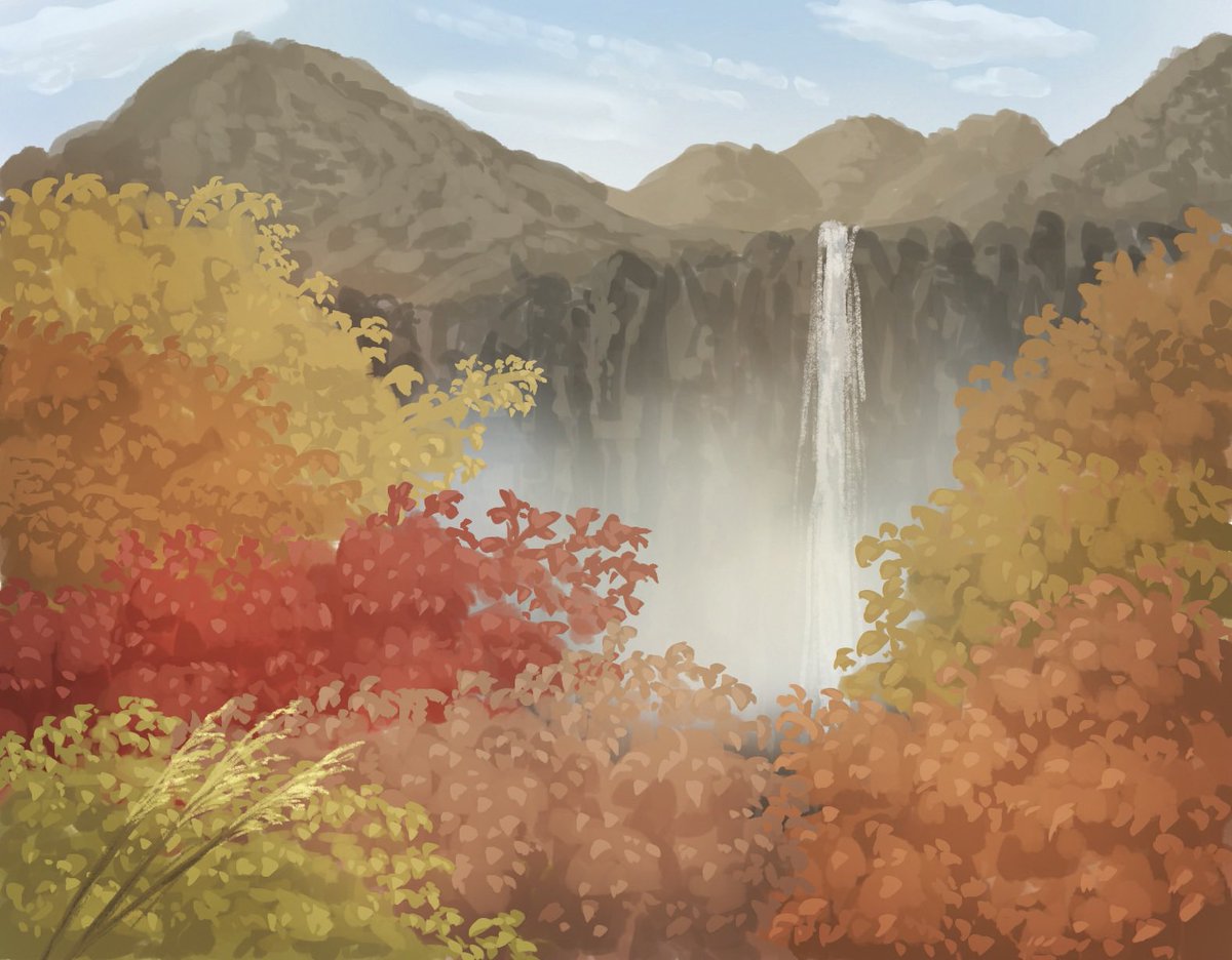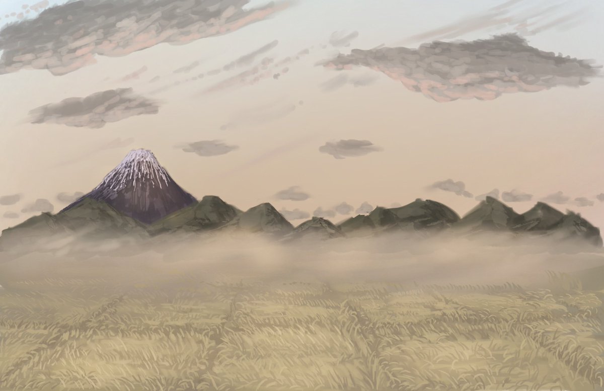 I practiced drawing cloud and mountain. I wonder how I can draw them well.. 雲と山を描きました。どうすればうまく描けるのだろう... #楽背イラスト #背景イラスト #イラスト #風景イラスト #イラスト初心者 #procreate #background #drawings #illustraion