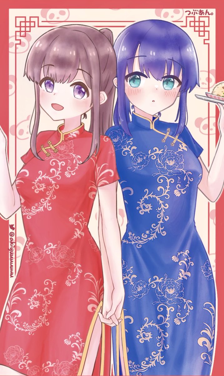 オフ会のポストカード用にチャイナあだしまを描かせていただきました! (白米ハンバーグさんリクエストありがとうございます!) #安達としまむら