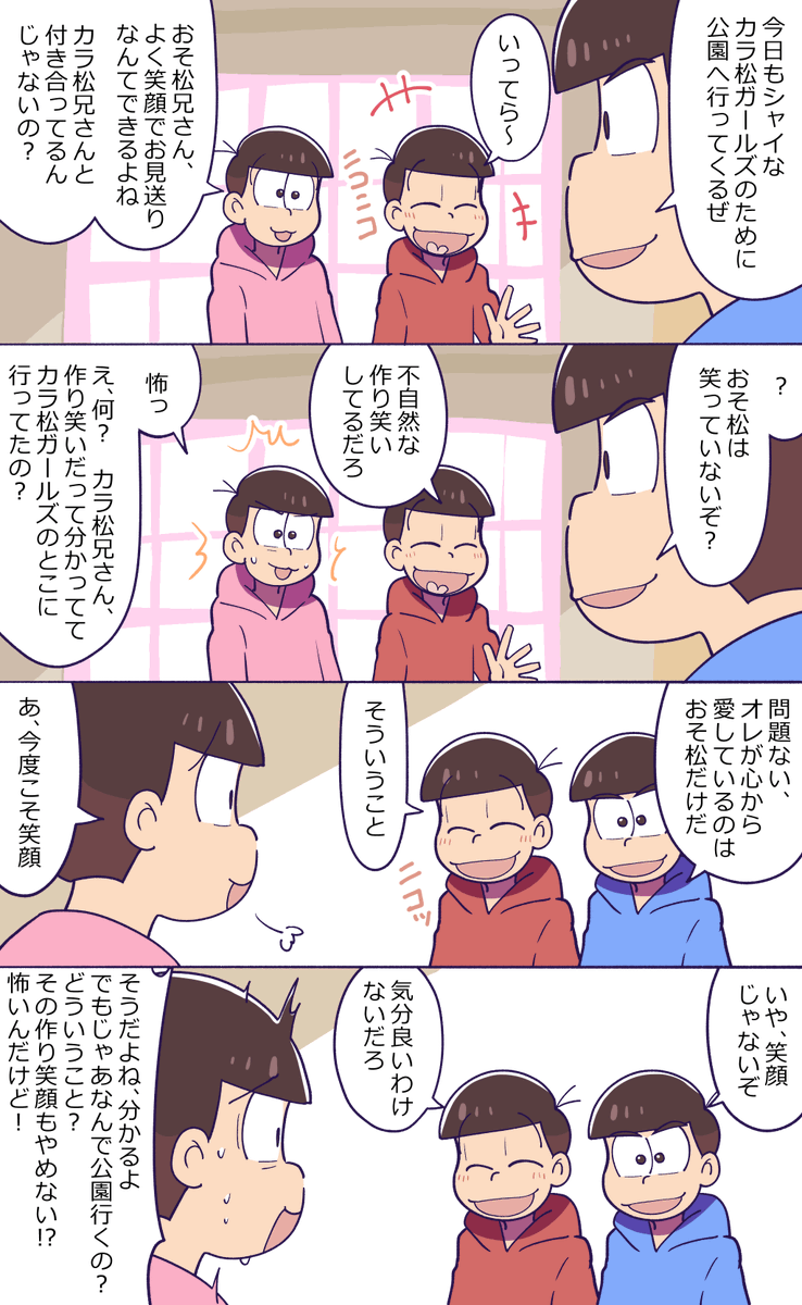#カラおそ版深夜の真剣創作60分一本勝負 @karaoso_60m お題【○○遅れの誕生日】【笑顔】【未来】 ドラ教などの派生を見るに兄さんは思い人を待つタイプ🤤(と、とても不機嫌になるのの両方の性質を併せ持つ♥)