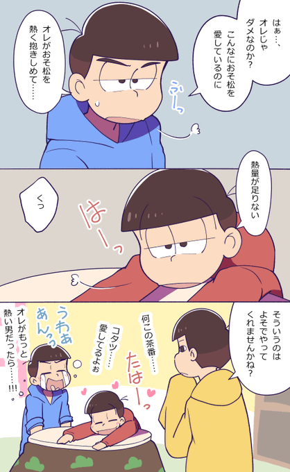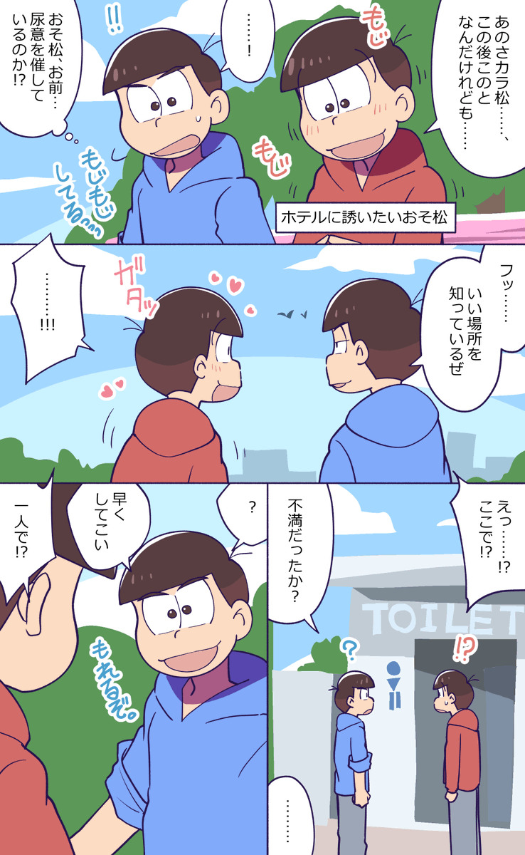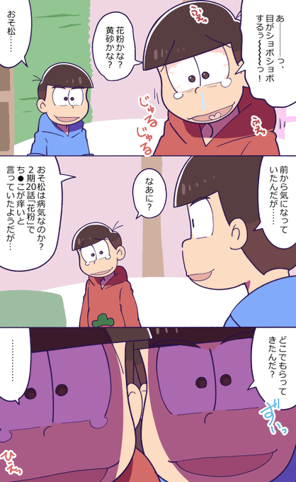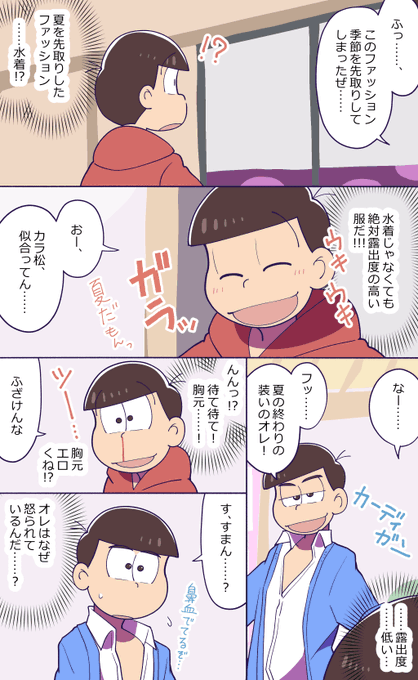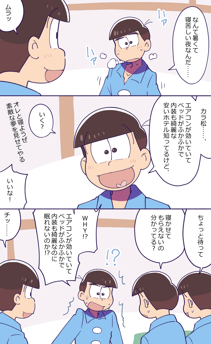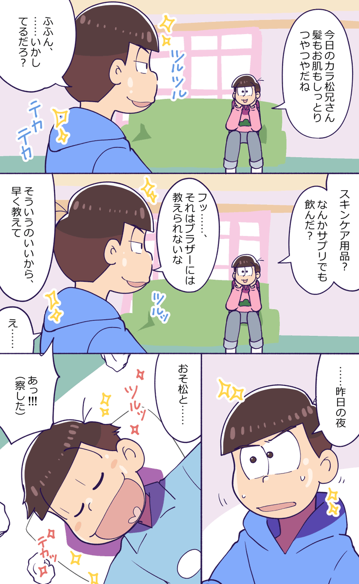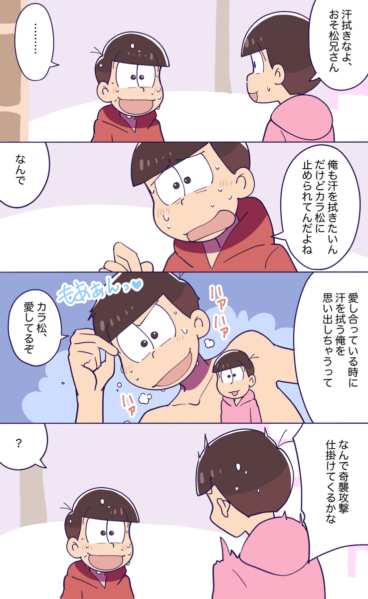 #おそカラ版深夜の60分一本勝負 @osokara_1draw2 お題『しっとり』 次男はおしゃれに気を遣っているので何かお手入れをしたのかと思ったトッティ自滅😀別の意味でしっとりしている次男