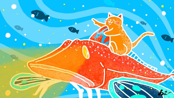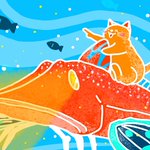 #06 ホウボウ深海探検 今日の夜ごはんは ホウボウのお刺身を食べました。 #Adobeネコイラスト #ねこ #猫のいる暮らし #猫好き #イラスト #イラスト好きな人と繋がりたい #AdobeFresco