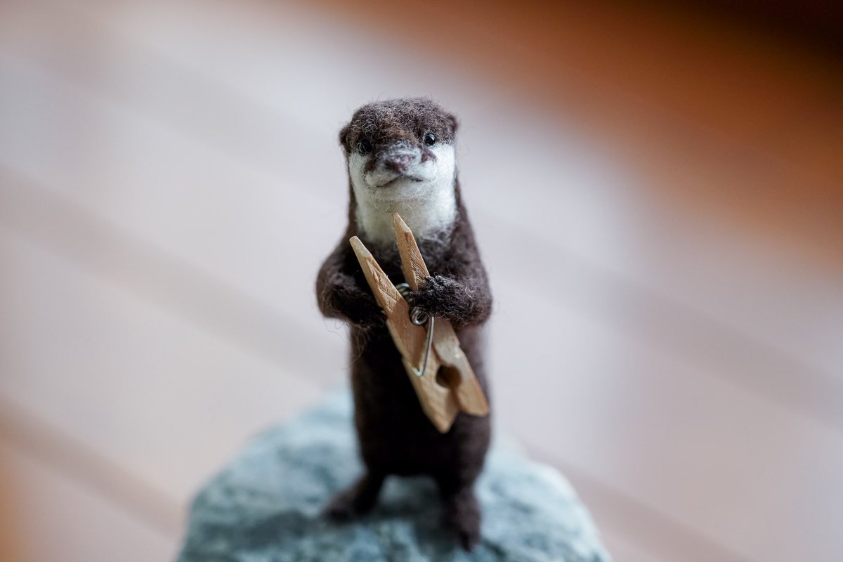 モリタ ( @morimomorita ) さんから 体長9cmのカワウソさんをお迎え! 嬉しいな╰(*´︶`*)╯ 自宅PCの傍に住んでもらおっと #カワウソ #羊毛フェルト #今日イチ嬉しい #photography