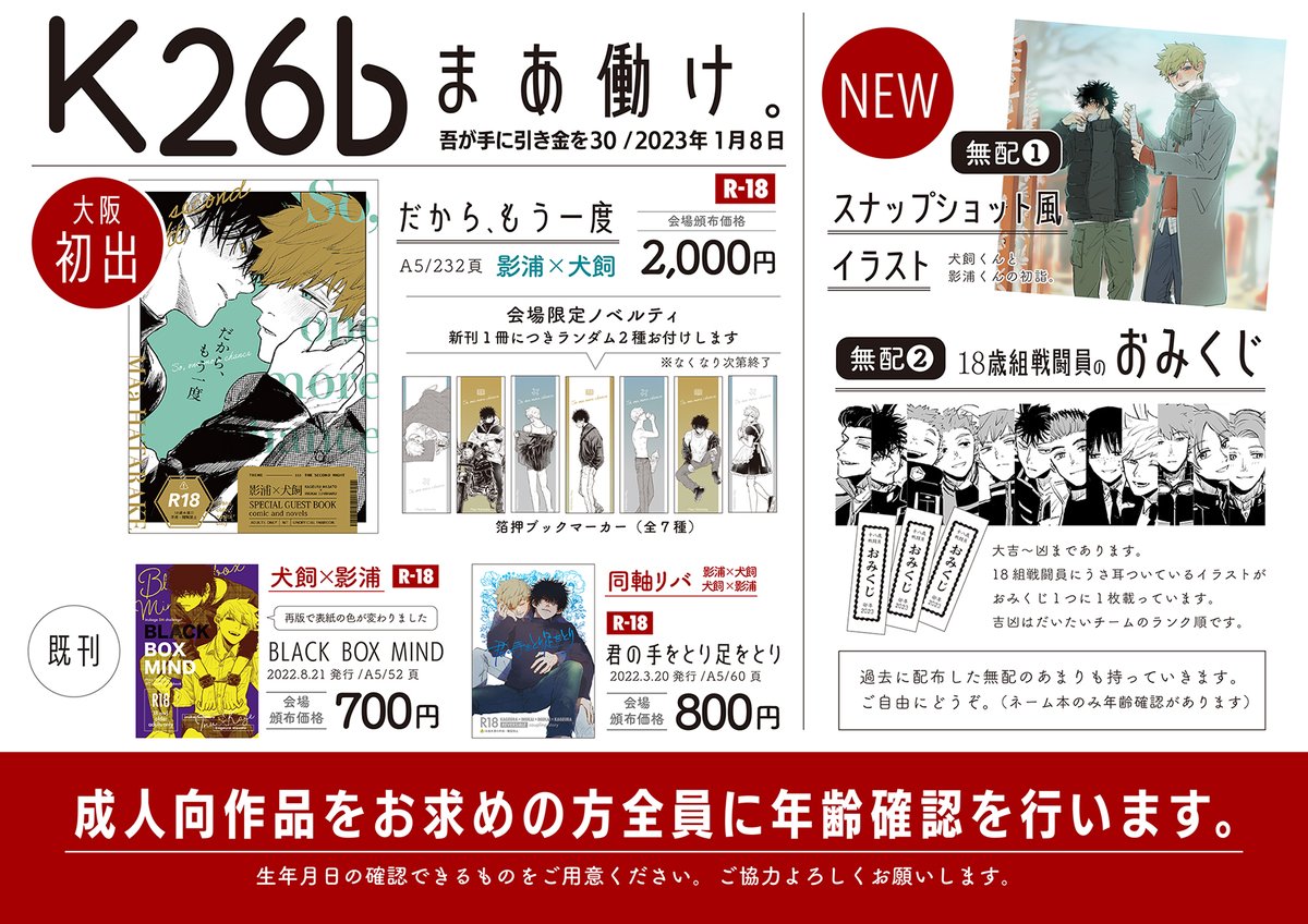 12月の🐶受オンリー、影犬で申し込んでます…!(楽しみにしすぎててかなり気が早いかもしれない😊) 新刊カード集められた方々の努力に大感謝です…🙏 【サークル参加します!!】12月11日(東京)Dozen Rose Fes.2022| #イベントGO_赤ブー akaboo.jp/event/item/201…