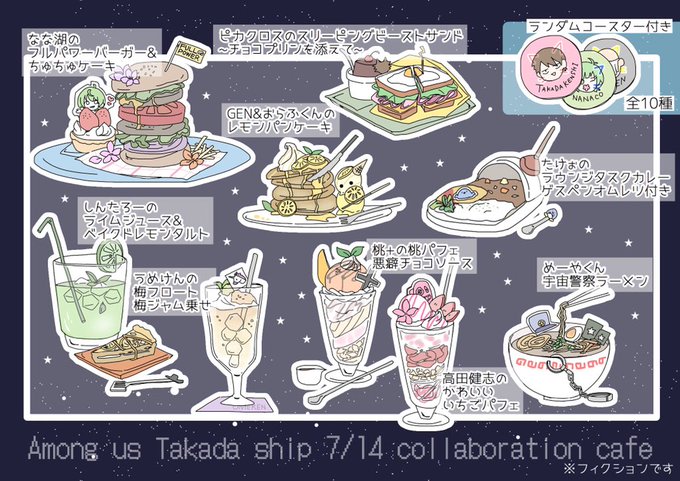 メニュー全制覇待った無し #なな湖大好きちゅちゅアモアス #高田大好きちゅちゅアート #GENです #見るかもわからん #ぴかあーと #うめ絵けん #めー画 #狂人たろアート #いらすとーたす #たけぉぇかき >>> 7/14 高田船 among us
