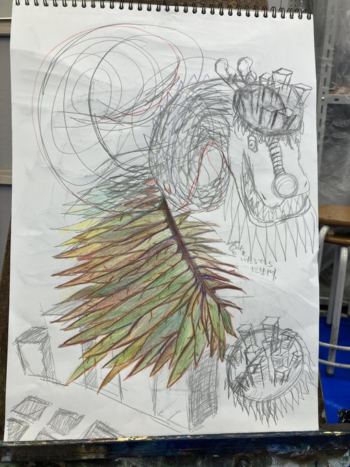 今日の成果! まだ甘いエスキースに絵のコンセプトを根本的に改善する、あと25日までの課題の締切… 結論、家帰ってからまた考え直し… まだ終わる気がしない… #趣味絵 #絵描きさんと繋がりたい #私の絵柄が好みって人にフォローされたい #開発日記