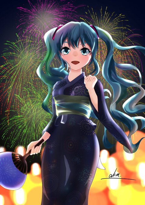 人混みがない花火大会行きたいです!きしめんみたいな髪の毛練習してます♪ #イラスト #イラスト練習中 #イラスト好きさんと繋がりたい #絵描きさんと繋がりたい #絵描きさんフォロバ100 #初音ミク #illustration