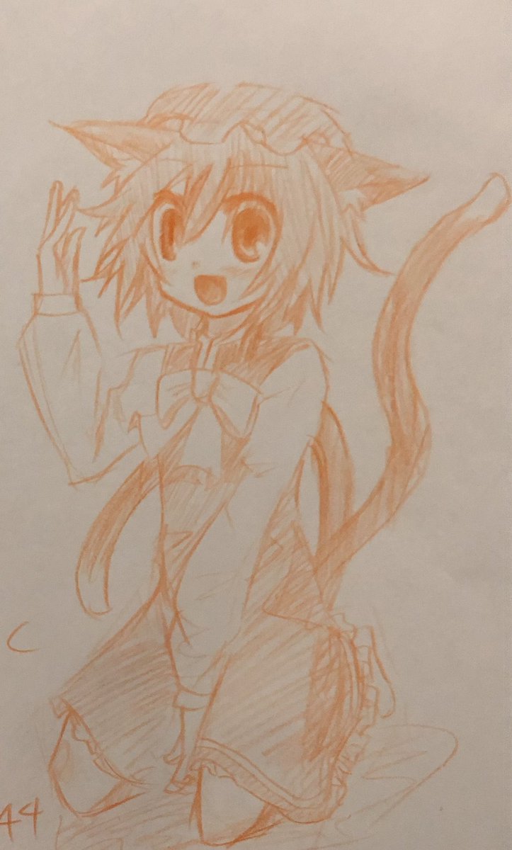 3 25 はるか昔の橙の落描きと その落描きを出来るだけ元にしてリメイク 2009/8/11← → 2022/5/28 #東方Project #橙 #画力変化ビフォーアフター 22/05/28 14:33