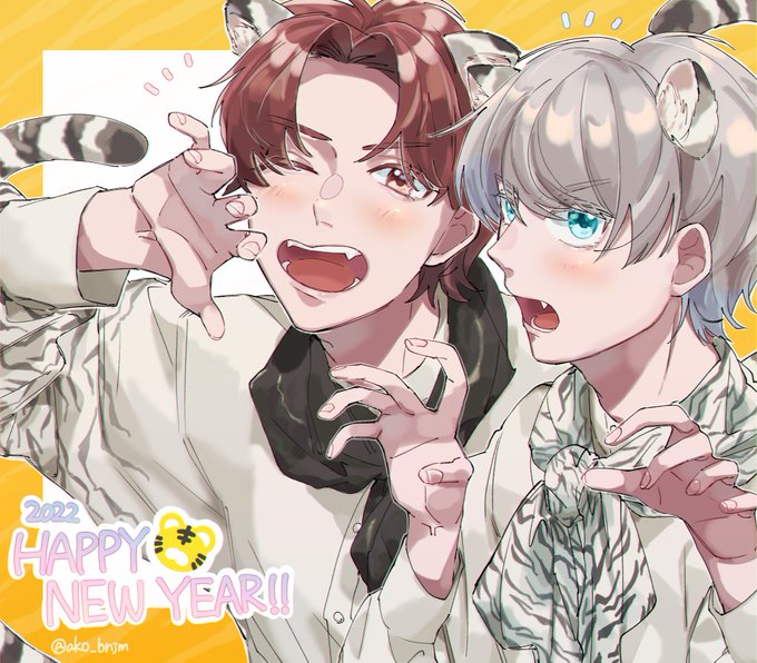 10 62 描き初めは歳男後輩ズ〜!今年もよろしくお願いします!🐯💖 22/01/02 21:42