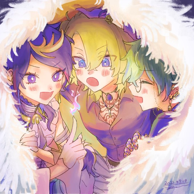 Happy 1st Anniversary!!🥳 👑❤️🧡💛💙💜👑 #LuxiemAnn1versary #Ikenography #Akurylic #YaminoArt #MystArt #drawluca