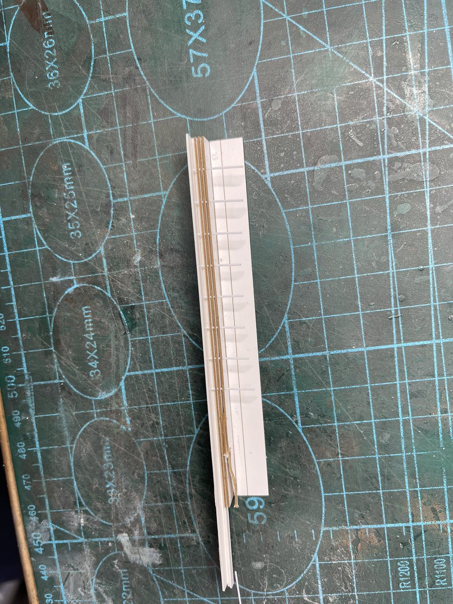 40 265 視線誘導標ポールの作り方がひらめきました💕 と言っても何をひらめいたかと言うと白の3本の帯をどのように塗装するかって所でずっと悩んでましたが写真のようにマスキングスペーサーの作成で解決しました。 サイズは1/150 ポール太さ0.5ミリのプラ棒 22/03/23 10:29