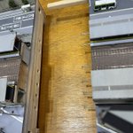 110 537 面格子の作り方。 前もって0.3mm間隔にプラ棒が入る台座を作成して、そこに0.3mmのプラ棒を入れて左右の先端にプラ板を接着して固定。それを外して縦棒をサイズに応じて取り付けてカット。塗装して完了です。 20/08/07 11:00
