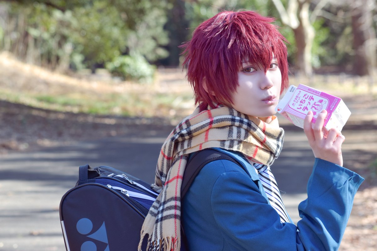 ⚠︎こすぷれ いちごラテになりたい🍓 ところで私が撮る🎾、自分ではめちゃくちゃ好きです😊❤️外でもスタジオでも、🎾は全部好き! 丸井くんはひすいさん(@Saxxx1207 )!