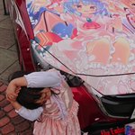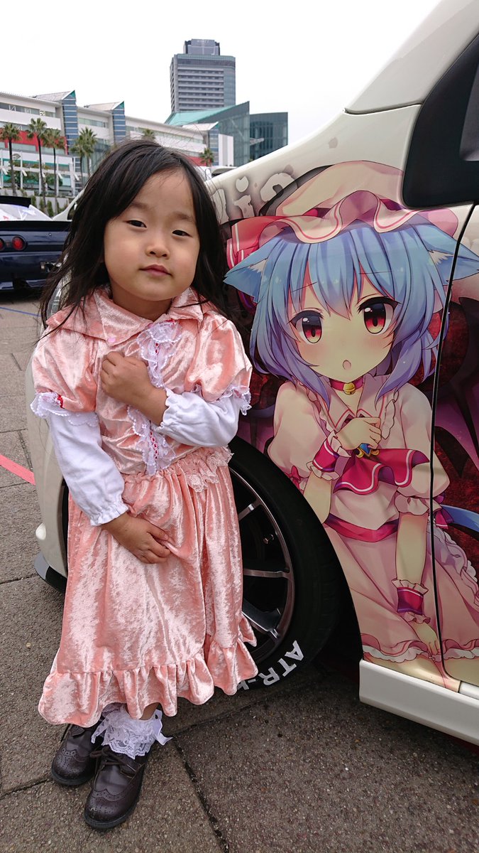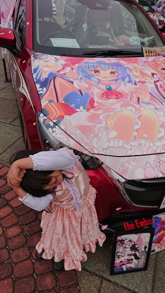 レミリアの痛車と撮らせてもらいました💖うちのおぜうさまは帽子を頑なに被ってくれない゜・(ノД`)・゜ 近くにオーナー様がいらっしゃらなかったので、もしSNS掲載NGの方いましたら言って下さい #コス痛 #コス痛南港ATC #コスプレ #COSMAI #レミリア・スカーレット #東方project #オーナーさんに届け