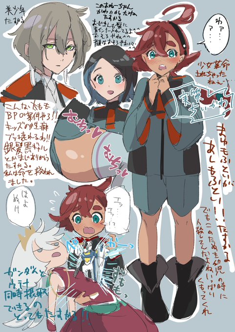 288 1285 幼少ジェターク兄弟の半ズボン供給とフェルシーちゃんほんとに助かったのだ…23話感想らくがきです。 #水星の魔女 #G_Witch 23/06/26 23:25