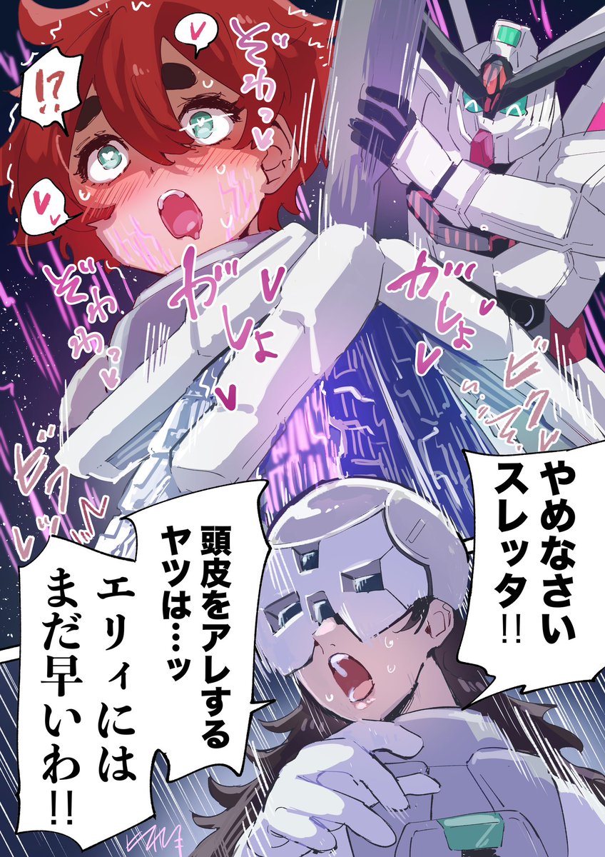 1話放送直後に描いた感想らくがき再掲… 見事にミスリード引っかかってスレッタを記憶喪失か偽名のエリクトだと思っている… #水星の魔女 #G_Witch