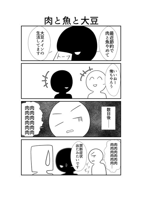 【4コマ】肉と魚と大豆 #漫画が読めるハッシュタグ #創作漫画