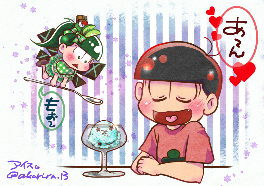 #おそチョロ版深夜の真剣お絵描き60分一本勝負 昨日どうしてもこの絵上手くいかない、止めていいかなって言ったな、あれは嘘だ🍨 たび松のフェアリー・チョロ、頭の飾りアイスだよね???って描き始めたけど、小さくてわからないっていう。