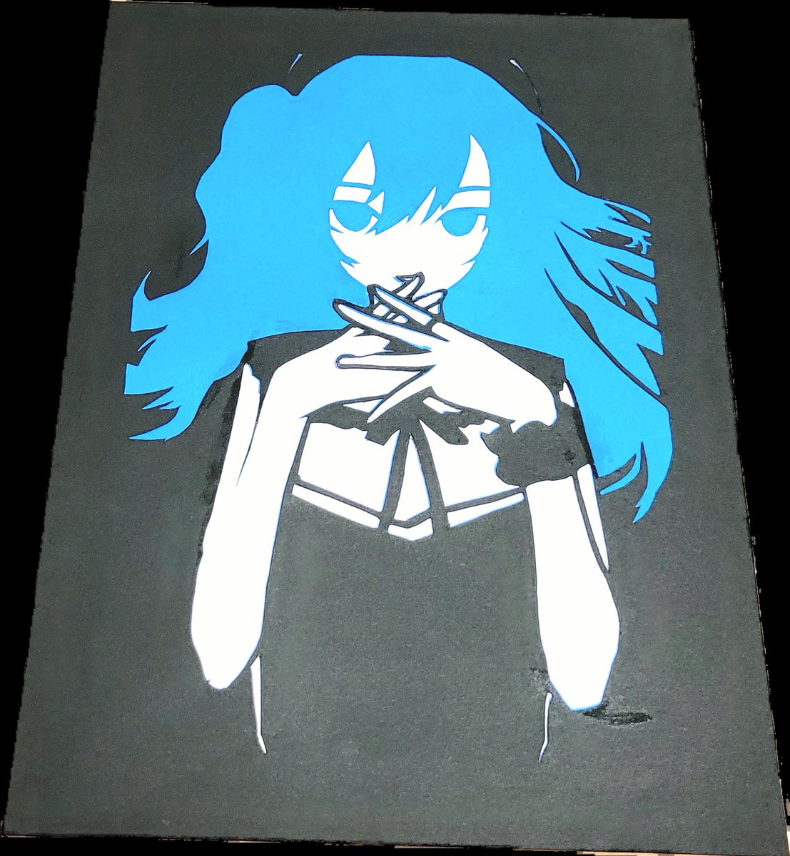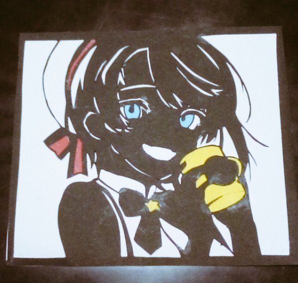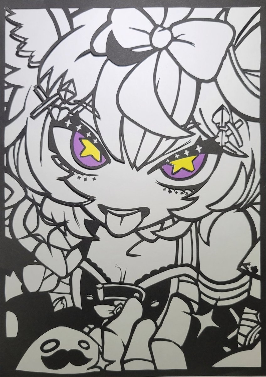 Love❤💙 切り絵の新作になります! 今回はVOICE様 (@VOICENOSAGYOUBA) のイラストを元に作らせていただきました!ありがとうございます! #gawrt #BaelzBrush #切り絵