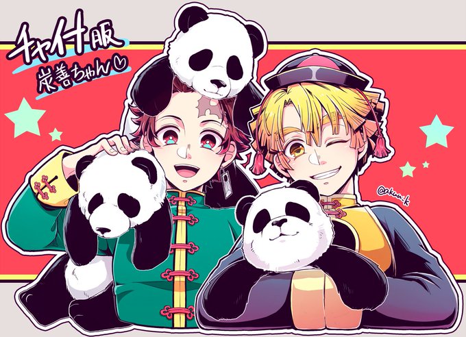 13 50 チャイナ服(🐼)炭善ちゃん🎴⚡ +あんまり綺麗じゃない🙄線画(オマケ) 21/07/12 20:50
