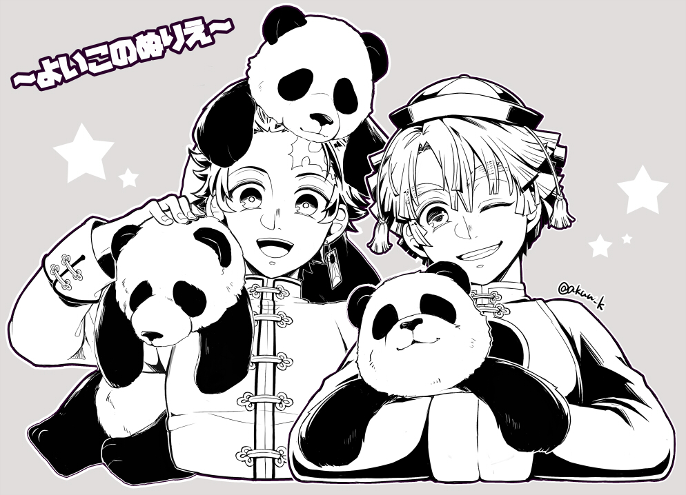 12日新刊の表紙できた~~(やっと😭) ■B5正方形/32P/allフルカラー 500円 ■通販・会場共通ノベルティ/ポストカード付 ・Twitter等に投稿した炭善中心落書きのフルカラ再録本・第二段(描きおろし頁も少し有) 🐯さんに申請したので、早いと今晩位から通販予約始まるかと思います…何卒良しなに🙇♂️